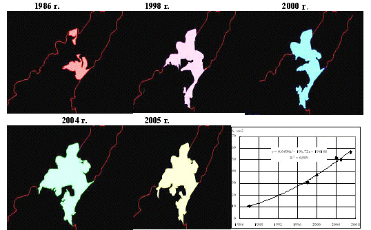 образовалась перемычка. Площадь перемычки составляют уже более 64 км2. Если