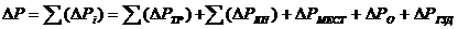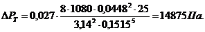 ΣΔPМ=12591,23+1986 + 1398,3=15975,53Па;