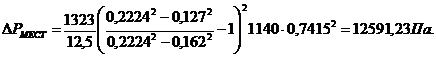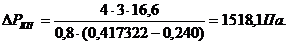ΔPГ =(1-0,9956) (2,6-1,08) ·10·500 = 38000Па.