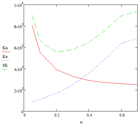 побудовано графік залежностей енергетичних, амортизаційних та сумарних затрат.