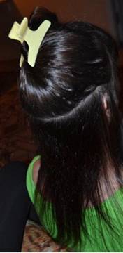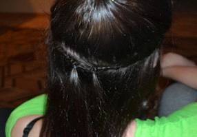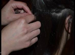 незаметны. На затылке крепятся широкие трессы, у висков - более узкие.