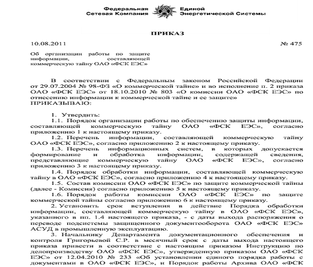 Документы по защите коммерческой тайны