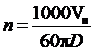 n - частота вращения шпинделя, об / мин;
