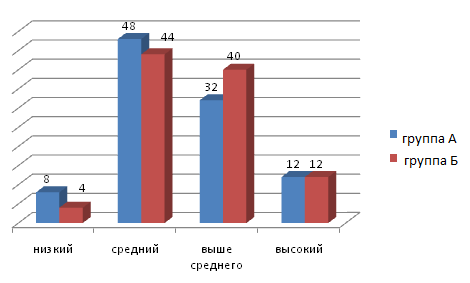 испытуемых проявлялась следующим образом: средний балл в группе респондентов