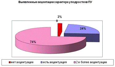 отклоняющимся поведением (100%) выявлена та или иная акцентуация характера.