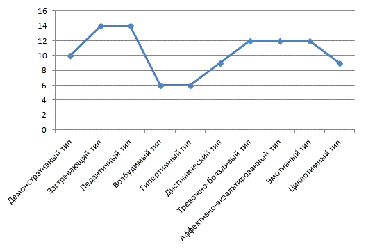 характера, но преобладают гипертимные (20%), демонстративные (15%),