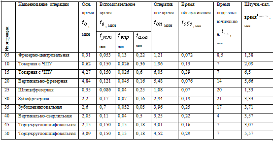 норм времени на остальные операции выполняется аналогично и сводятся в таблицу