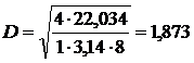 диаметр, округленный до стандартного, D = 1,873 м и высота h =