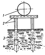 - трубопровод; 2 - опоры; 3 - деятельный слой; 4 - многолетнемерзлый