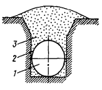 - трубопровод; 2 - профиль траншеи; 3 - грунт обратной засыпки