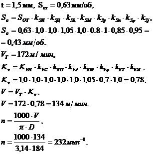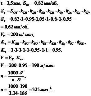 Kv - коэффициент, учитывающий фактические условия резания.