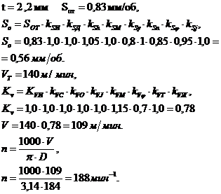 режимов резания на обработку пов. № 11 200 мм по [3]