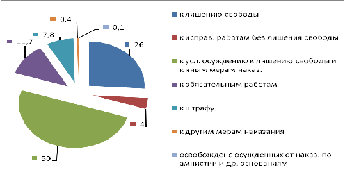 Распределение осужденных по основным мерам наказания, назначенных судами