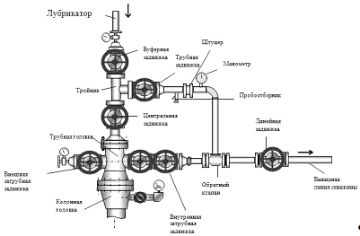 жидкость (нефть или вода) подается по насосно-компрессорным трубам, а песок,