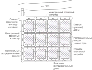 магистральные дренажные коллекторы, главные (уличные) дрены и локальные