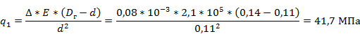 при упругой деформации материалов валов, гильзы и муфты присоздании натяга.