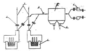 1-електропечi; 2- шахти;3-клапани дросельні;4-клапани підсосу