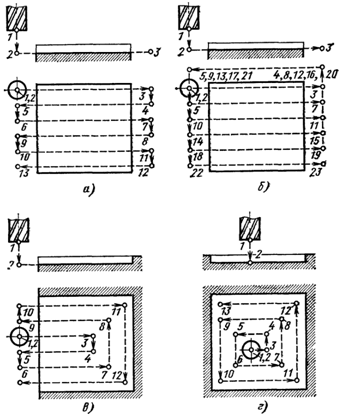 схема "лента" (рис. 1 в), а для обработки закрытой плоскости - схема