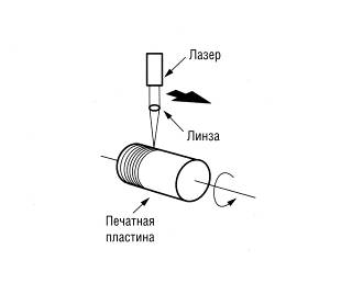 экспонировании барабан вращается вместе с формой, лазерная головка при этом