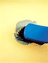 вертикально с лёгким наклоном вперёд, чтобы плёнка прижималась к ткани под