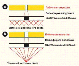 основу. Плёнка не чувствительна к свету до тех пор, пока не будет нанесена на