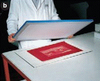 проявлена, трафаретная ткань должна быть уже обработана и обезжирена, оставаясь