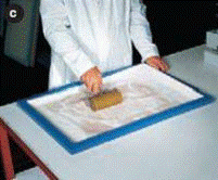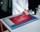 трафарета, помогая надёжному проникновению в ткань плёночной эмульсии и