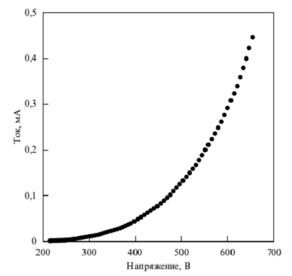 отрицательно, из нанотрубки на второй электрод излучается пучок электронов: ток