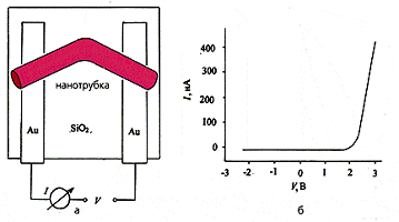 используются эффекты туннельного переноса электронов через нанотрубку по