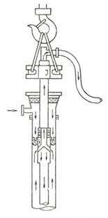 построенного предмета в скважину и отражателя исходящего потока промывочной