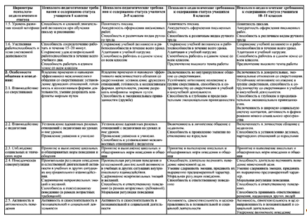 .3 Системы психолого-педагогических требований к содержанию статуса