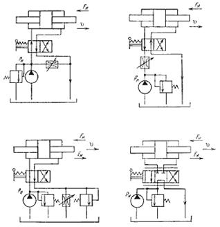 В данной схеме шток гидроцилиндра автоматически совершает холостой и рабочий