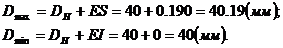 Предельные размеры отверстия: