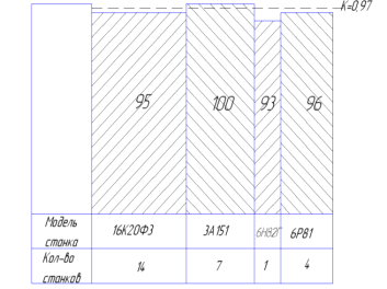 согласно расчетам было подобрано оборудование в количестве 25 станков, принято