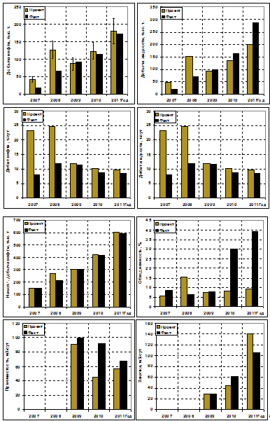 не достигли плановых показателей (при плане 14,8 тн/сут, средний дебит нефти