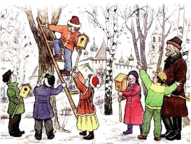 зимующих птицах, о дятле и снегире.