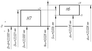 max=dmax-Lmin=20.0065-19.992=0.0145 мм;