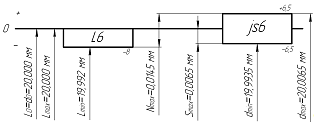 Lср=(Lmax+Lmin)/2=(20.000+19.992)/2=19.996 мм.ср=(dmax+dmin)/2=(20.0065+19.9935)/2=20.000мм.
