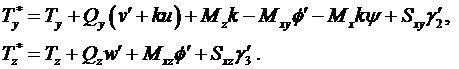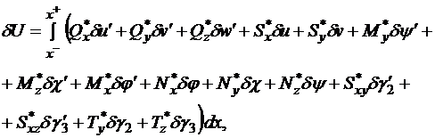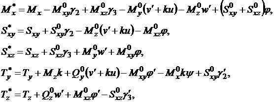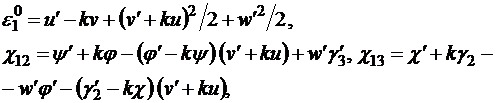 [1,2] был построен непротиворечивый вариант геометрически нелинейных уравнений
