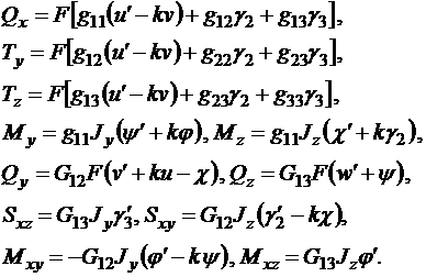 пространственно изгибной и крутильной (чисто сдвиговой) ФПУ стержня при