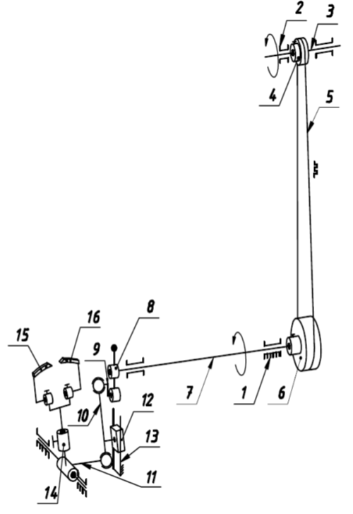 механізмом петельником та проставлені позиції деталей та механізмів.