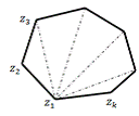 выпуклого многоугольника площадь есть сумма площадей треугольников (рис. 22)