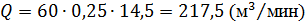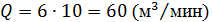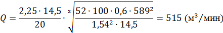 воздуха для разжижения газов после взрывных работ, м3/мин