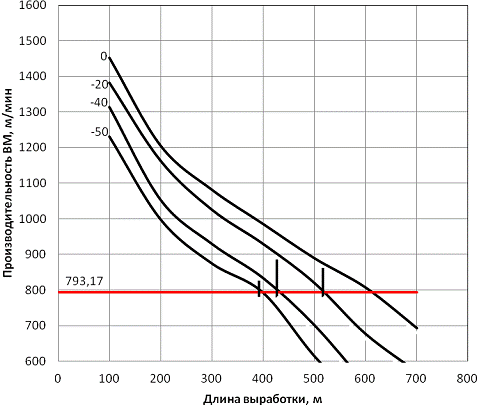 для разжижения газов после взрывных работ вместо расчетной длины используем