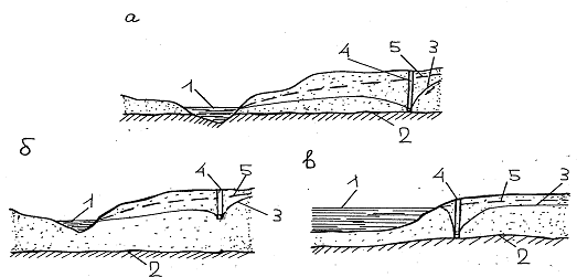 горизонтального; б - вертикального. 1 - непониженный УГВ; 2 - пониженный УГВ; 3