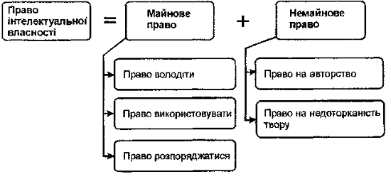 інтелектуальної власності, висвітлити майнові та немайнові права, пов’язані з