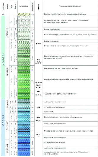 нефтегазоностность приурочена к отложениям нижне и верхне мелового возраста.
