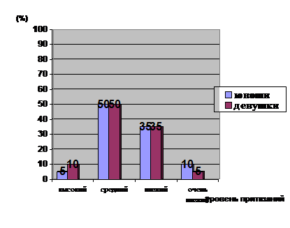 подростков со средним уровнем, 50% - с умеренно высоким уровнем , 20% - со