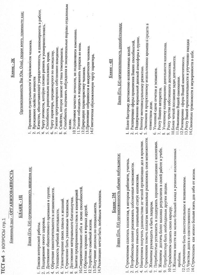 варианты, так как в этом тесте нет плохих или хороших ответов, здесь важна