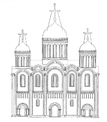 Рис. 24 Западный фасад Успенского собора во Владимире времен Всеволода III